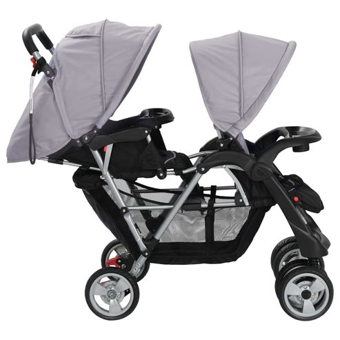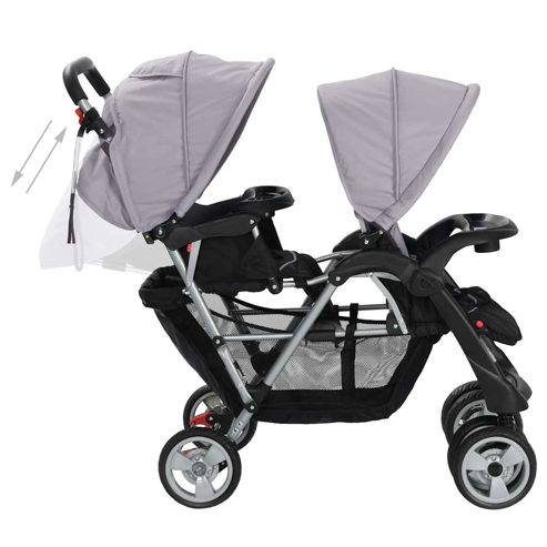 vidaXL Tandem-Kinderwagen Stahl Grau und Schwarz