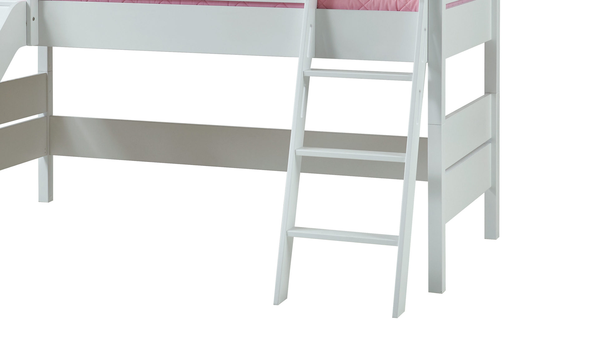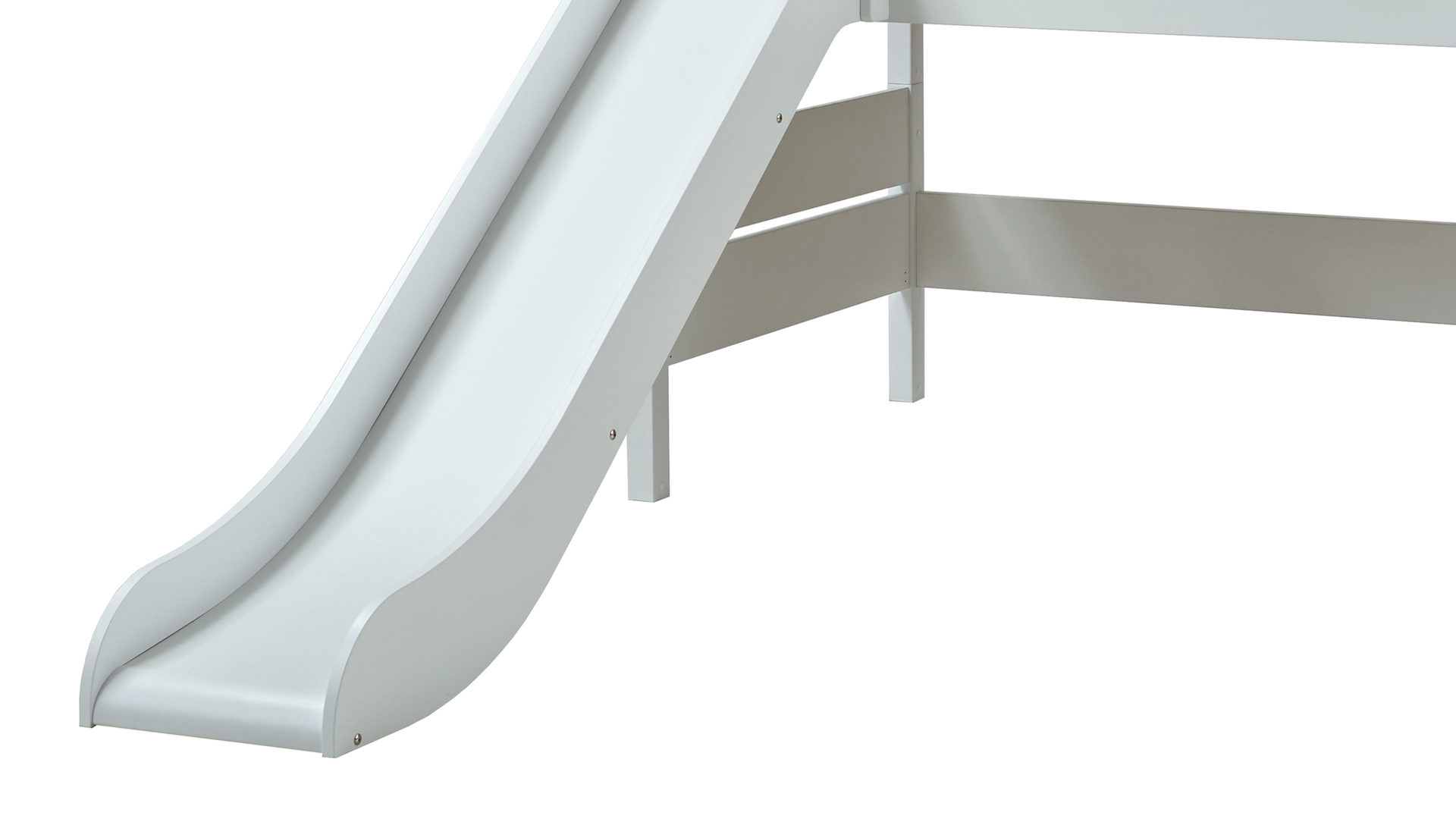 Rutsche, Leiter und Bettpfosten aus massiver, kreideweiß lackierter Buche