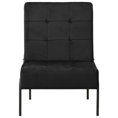 Mit seinem stilvollen Design ist dieser Relaxstuhl eine praktische und moderne Ergänzung zu Ihrem Wohnraum. Dieser Wohnzimmerstuhl ist mit weichem Samt bezogen und verfügt über ein ergonomisches Design, um eine äußerst bequeme Sitzposition zu bieten. Der gepolsterte Sitz und die Rückenlehne sorgen für zusätzlichen Komfort. Zudem tragen die pulverbeschichteten Metallbeine zur Stabilität und Robustheit des Stuhls bei. ** Farbe: Schwarz ** Material: Samt (100 % Polyester), pulverbeschichtetes Metall ** Abmessungen: 65 x 79 x 87 cm (B x T x H) ** Sitzbreite: 61 cm ** Sitztiefe: 51 cm ** Sitzstärke: 18 cm ** Rückenhöhe: 51 cm ** Sitzhöhe: 42 cm ** Max. Tragfähigkeit: 110 kg ** Zusammenbau erforderlich: Ja Maximal 110 kg pro Sitzplatz. Achte auf die Gefahr von offenem Feuer und anderen starken Wärmequellen in der Nähe des Produkts.