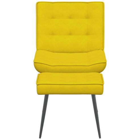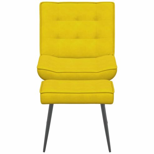 Erlebe optimalen Sitzkomfort nach einem anstrengenden Tag auf diesem gemütlichen Relaxsessel! Weich und gemütlich: Samt ist ein weicher und bequemer Stoff, der sich angenehm auf der Haut anfühlt.Robuster und stabiler Ständer: Aus Metall und Sperrholz gefertigt, gewährleistet der Ständer Robustheit und Stabilität.Komfortables Sitzerlebnis: Die weiche Polsterung des Sessels bietet ultimativen Komfort und Halt und sorgt so für ein angenehmes Sitzerlebnis.Bequeme Fußstütze: Die integrierte Fußstütze bietet zusätzlichen Sitzkomfort.Vielseitig einsetzbar: Dieser Sessel aus Samt ist eine vielseitige und stilvolle Ergänzung zu deinem Zuhause oder Büro. Der Sessel findet Platz neben dem Sofa und lässt sich zum Schaffen einer gemütlichen Sitzecke im Schlafzimmer oder Büro verwenden, wo er die Ästhetik deines Wohnraums sofort aufwertet. Gut zu wissen:Jedes Produkt wird samt einer Montageanleitung geliefert und lässt sich daher einfach zusammenbauen. ** Farbe: Gelb ** Material: Samt (100 % Polyester), Metall, Sperrholz ** Füllung: Schaumstoff ** Sitzdicke: 11 cm ** Beinhöhe: 33 cm ** Sitzhöhe vom Boden: 44 cm ** Maximale Tragfähigkeit (pro Sitz ): 110 kg ** Zusammenbau erforderlich: Ja ** Relaxstuhl: ** Gesamtabmessungen: 64 x 74 x 84 cm (B x T x H) ** Höhe der Rückenlehne: 50 cm ** Sitztiefe: 50 cm ** Hocker: ** Gesamtabmessungen: 52 x 34 x 44 cm (B x T x H) ** Lieferung umfasst: ** 1 x Relaxsessel ** 1 x Hocker