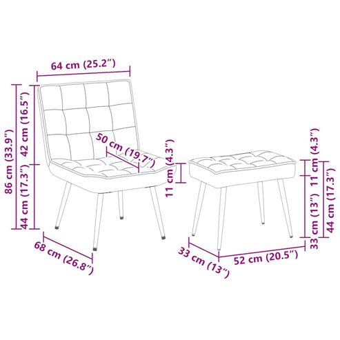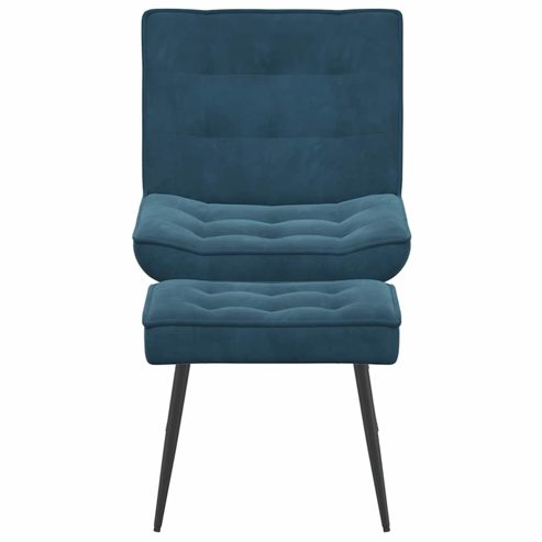 Erlebe optimalen Sitzkomfort nach einem anstrengenden Tag auf diesem gemütlichen Relaxsessel! Weich und gemütlich: Samt ist ein weicher und bequemer Stoff, der sich angenehm auf der Haut anfühlt.Robuster und stabiler Ständer: Aus Metall und Sperrholz gefertigt, gewährleistet der Ständer Robustheit und Stabilität.Komfortables Sitzerlebnis: Die weiche Polsterung des Sessels bietet ultimativen Komfort und Halt und sorgt so für ein angenehmes Sitzerlebnis.Bequeme Fußstütze: Die integrierte Fußstütze bietet zusätzlichen Sitzkomfort.Vielseitig einsetzbar: Dieser Sessel aus Samt ist eine vielseitige und stilvolle Ergänzung zu deinem Zuhause oder Büro. Der Sessel findet Platz neben dem Sofa und lässt sich zum Schaffen einer gemütlichen Sitzecke im Schlafzimmer oder Büro verwenden, wo er die Ästhetik deines Wohnraums sofort aufwertet. Gut zu wissen:Jedes Produkt wird samt einer Montageanleitung geliefert und lässt sich daher einfach zusammenbauen. ** Farbe: Blau ** Material: Samt (100 % Polyester), Metall, Sperrholz ** Füllung: Schaumstoff ** Sitzdicke: 11 cm ** Beinhöhe: 33 cm ** Sitzhöhe vom Boden: 44 cm ** Maximale Tragfähigkeit (pro Sitz ): 110 kg ** Zusammenbau erforderlich: Ja ** Relaxstuhl: ** Gesamtabmessungen: 64 x 74 x 84 cm (B x T x H) ** Höhe der Rückenlehne: 50 cm ** Sitztiefe: 50 cm ** Hocker: ** Gesamtabmessungen: 52 x 34 x 44 cm (B x T x H) ** Lieferung umfasst: ** 1 x Relaxsessel ** 1 x Hocker