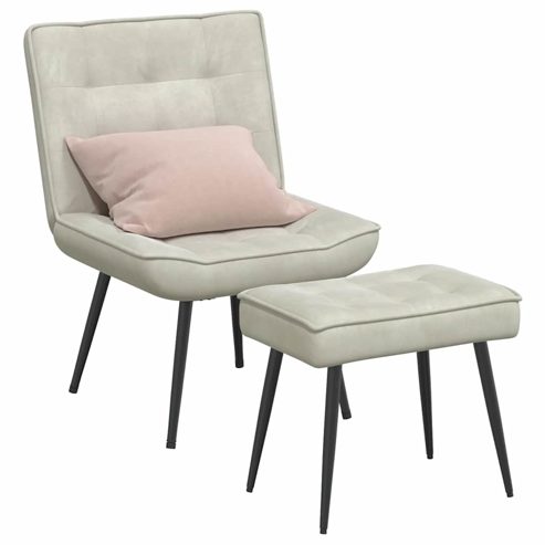 Erlebe optimalen Sitzkomfort nach einem anstrengenden Tag auf diesem gemütlichen Relaxsessel! Weich und gemütlich: Samt ist ein weicher und bequemer Stoff, der sich angenehm auf der Haut anfühlt.Robuster und stabiler Ständer: Aus Metall und Sperrholz gefertigt, gewährleistet der Ständer Robustheit und Stabilität.Komfortables Sitzerlebnis: Die weiche Polsterung des Sessels bietet ultimativen Komfort und Halt und sorgt so für ein angenehmes Sitzerlebnis.Bequeme Fußstütze: Die integrierte Fußstütze bietet zusätzlichen Sitzkomfort.Vielseitig einsetzbar: Dieser Sessel aus Samt ist eine vielseitige und stilvolle Ergänzung zu deinem Zuhause oder Büro. Der Sessel findet Platz neben dem Sofa und lässt sich zum Schaffen einer gemütlichen Sitzecke im Schlafzimmer oder Büro verwenden, wo er die Ästhetik deines Wohnraums sofort aufwertet. Gut zu wissen:Jedes Produkt wird samt einer Montageanleitung geliefert und lässt sich daher einfach zusammenbauen. ** Farbe: Creme ** Material: Samt (100 % Polyester), Metall, Sperrholz ** Füllung: Schaumstoff ** Sitzdicke: 11 cm ** Beinhöhe: 33 cm ** Sitzhöhe vom Boden: 44 cm ** Maximale Tragfähigkeit (pro Sitz ): 110 kg ** Zusammenbau erforderlich: Ja ** Relaxstuhl: ** Gesamtabmessungen: 64 x 74 x 84 cm (B x T x H) ** Höhe der Rückenlehne: 50 cm ** Sitztiefe: 50 cm ** Hocker: ** Gesamtabmessungen: 52 x 34 x 44 cm (B x T x H) ** Lieferung umfasst: ** 1 x Relaxsessel ** 1 x Hocker