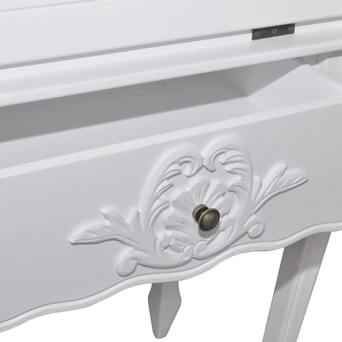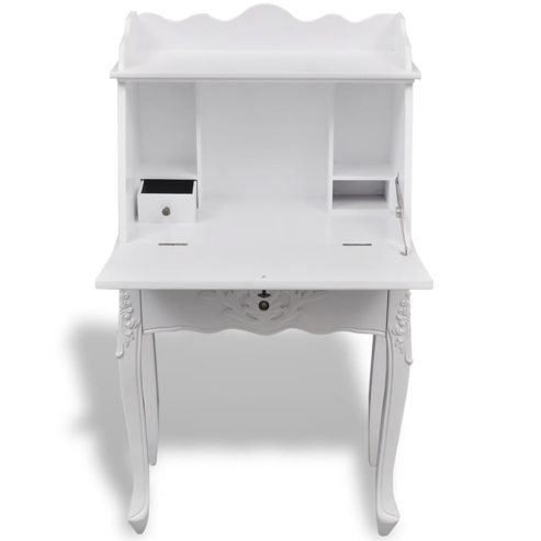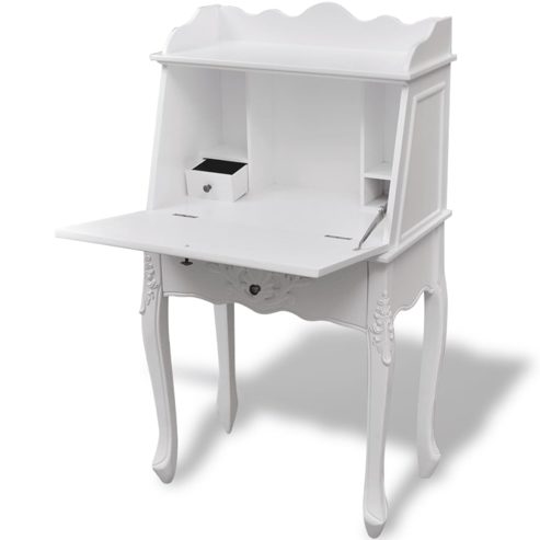 Dieser Sekretär im französischen Landhaus-Stil wird Ihrem Büro oder Arbeitszimmer eine elegante Note verleihen. Dieser Sekretär hat eine aufklappbare Arbeitsoberfläche, die gleichzeitig als Schranktür dient. Mit einer kleineren Schublade und Regalen, bietet dieser Schreibtisch viel Stauraum für Stifte, Schreibwaren und Schmuck. Hergestellt aus hochwertigem MDF und Kiefernholz mit einer weißen Lackierung, ist dieser Hochzeitsschrank besonders langlebig. ** Abmessungen: 60 x 36,4 x 111 cm (B x T x H) ** Maße des oberen Teils: 26 x 8 cm (T x H) ** Material: MDF + Kiefernholz ** Farbe: Weiß ** Mit aufklappbarer Arbeitsoberfläche, die gleichzeitig als Schranktür dient ** WARNUNG: Um ein Umkippen zu vermeiden, muss es mit der mitgelieferten Halterung an der Wand gesichert werden. Legal Documents: Weitere Informationen, wie Sie Ihre Möbel vor dem Umkippen schützen können, finden Sie hier