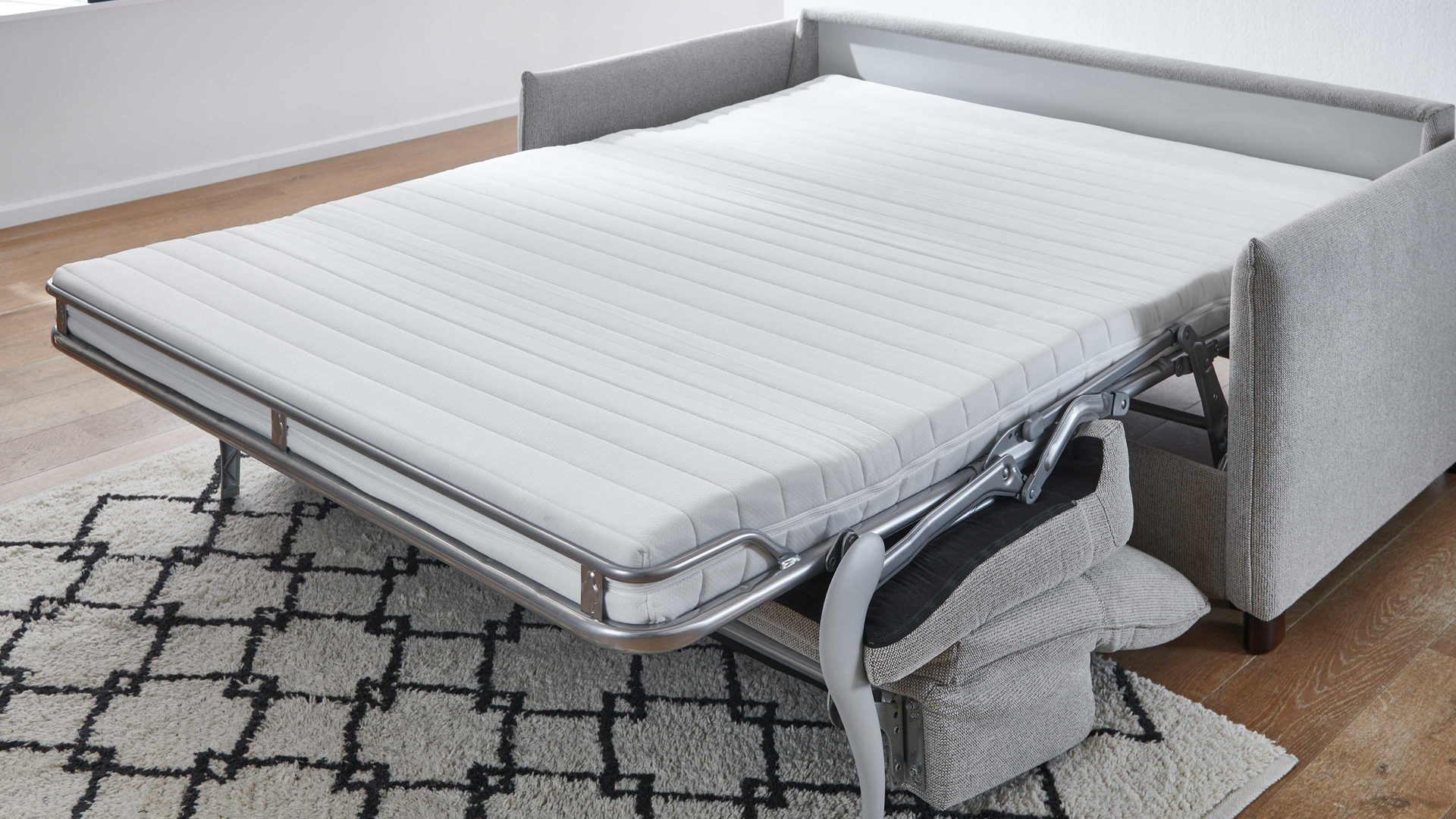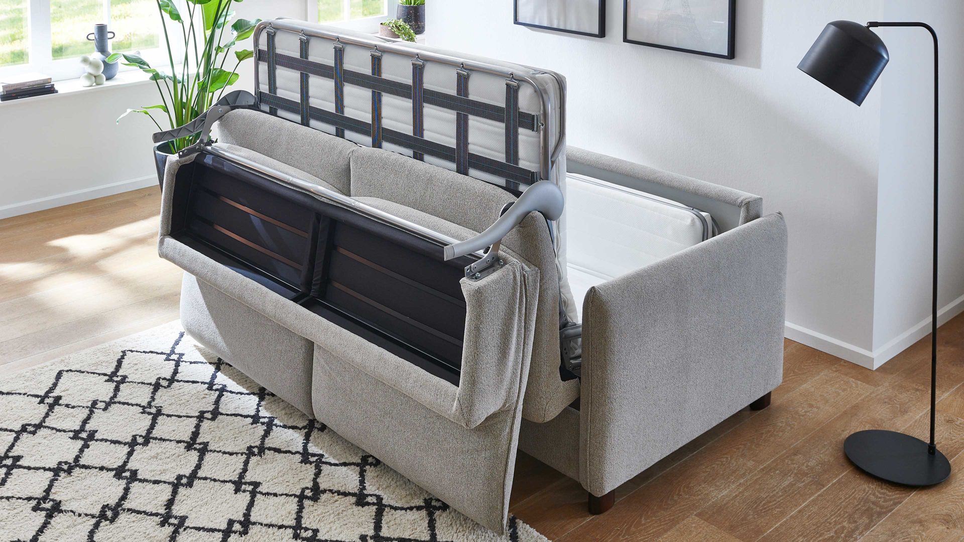 Die leichtgängige Hebemechanik des Schlafsofas ermöglicht ein einfaches Umwandeln von Sofa zu Bett und umgekehrt. So können Sie das Möbelstück flexibel nutzen und Ihre Gäste komfortabel unterbringen.