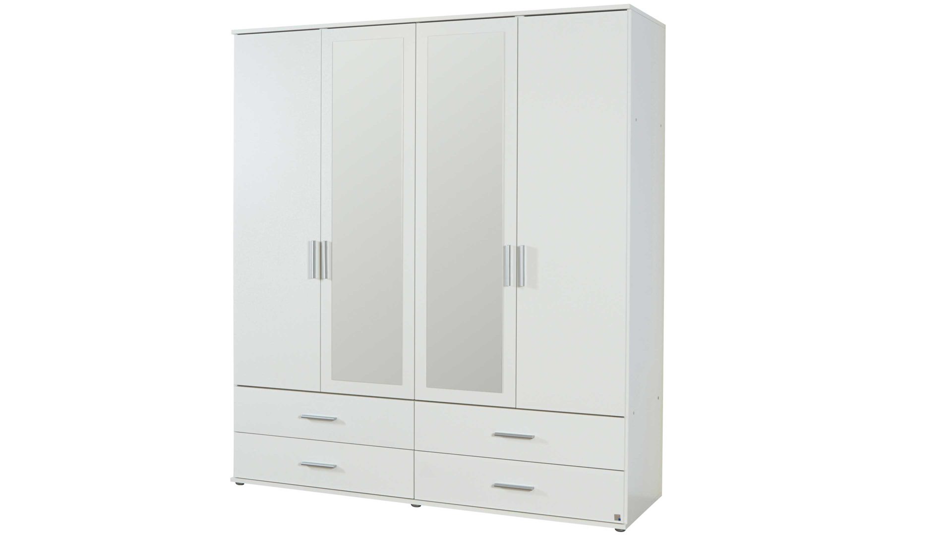 Denn der großzügige Kombi-Kleiderschrank hat zwei Holz- und zwei Spiegeltüren. Hier verstauen Sie auf drei Böden und an einer Kleiderstange bequem und ordentlich Ihre T-Shirts, Kleider und Hosen. Nutzen Sie die vier Schubladen für Ihre Socken oder Mützen. Insgesamt hat dieses zeitlose Schlafzimmermöbel oder Garderobenmöbel die praktischen Maße von ca. 168 x 188 x 52 cm (BxHxT). Weitere Größen sind mit der Produktnummer 698201 lieferbar.