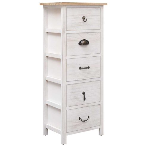 Dieser Beistellschrank aus Holz ist sowohl eine praktische, als auch dekorative Ergänzung zu jeder Inneneinrichtung. Er kann auch als Telefontisch, Nachttisch, Flurschrank, Schlafzimmerschrank usw. verwendet werden. Dieser aus Paulownia-Holz gefertigte Beistellschrank ist äußerst langlebig und robust. Das Sideboard bietet viel Stauraum mit seinen 5 Schubladen. Die stabile Oberplatte ist ideal zum Präsentieren von Dekoartikeln, Fotorahmen, Topfpflanzen uvm. Das Aufbewahrungsmöbel lässt sich leicht mit einem feuchten Tuch sauber halten. Dieser Schrank ist leicht zu montieren. ** Farbe: Weiß und Holzfarbe ** Material: Paulownia-Holz ** Abmessungen: 35 x 25 x 87 cm (B x T x H) ** Mit 5 Schubladen ** Max. Belastbarkeit (gesamt): 50 kg ** Max. Tragfähigkeit der Schublade (jeweils): 2,5 kg ** ACHTUNG: Um ein Umkippen zu vermeiden, muss es mit der mitgelieferten Halterung an der Wand gesichert werden. Legal Documents: Weitere Informationen, wie Sie Ihre Möbel vor dem Umkippen schützen können, finden Sie hier