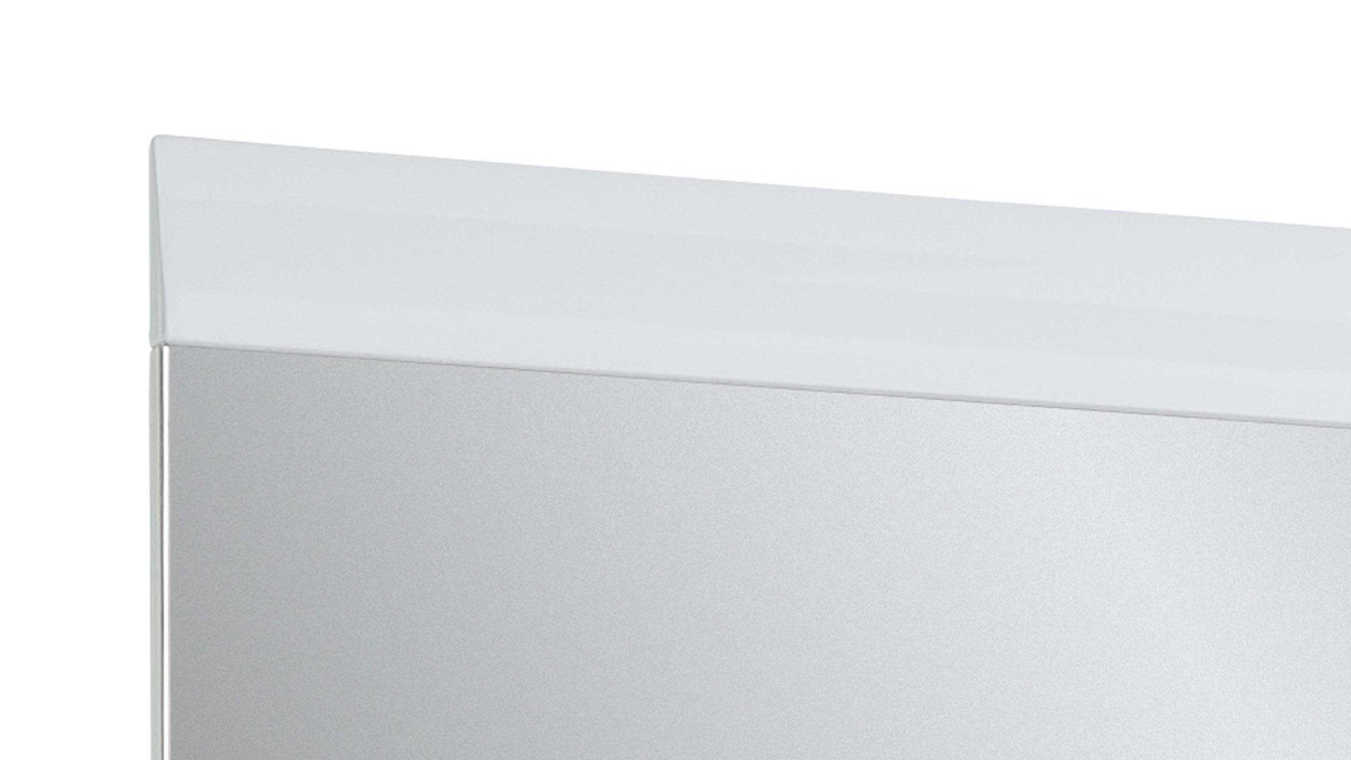 Der Garderobenspiegel auf beschichteter Spanplatte begeistert mit einer Applikation aus MDF mit weißer Hochglanzoberfläche, die dem Modell einen modernen Look verleiht und hervorragend zu Flurmöbeln in Weiß passt. Hängen Sie den Garderobenspiegel in Ihrer Diele über eine Kommode, um vor dem Verlassen des Hauses ganz unkompliziert Ihr äußeres Erscheinungsbild zu überprüfen. Mit einer Größe von ca. 89 x 63 x 4 cm (BxHxT) passt das funktionale Kleinmöbel perfekt auch in Ihr Schlafzimmer. Erweitern Sie den Spiegel mit weiteren Möbeln der Serie Adana hier im Shop.