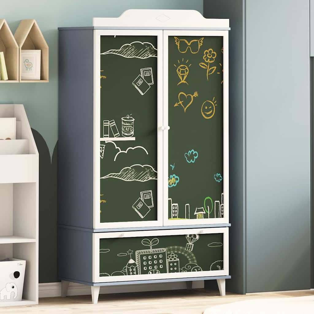 vidaXL Kreidetafel Kleiderschrank mit Tür Grau und Weiß Holzwerkstoff