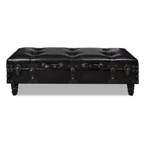 Diese lange Sitztruhe, die über ein elegantes Design und eine dunkelbraunen Lackierung verfügt, wird ein wahrer Hingucker für Ihre Wohnung sein! Diese klassische Sitzbank ist durch den dauerhaften MDF-Rahmen gekennzeichnet. Gepolstert mit hochwertigem, pflegeleichtem Kunstleder wird die Sitzbank Ihnen sicherlich den ultimativen Sitzkomfort bieten. Zur gleichen Zeit ist diese Bank ideal zum Aufbewahrungseinsatz, schafft dabei genügend Stauraum für unterschiedliche Dinge. Es ist wirklich eine perfekte Kombination von Funktionalität und Stil! Die festverbundenen Griffe auf der Bank sorgen für einen erhöhten Komfort und ein besseres Tragen, während die Schnallen und Schlüssellöcher es erlauben, die Sitztruhe für zusätzliche Sicherheit gesperrt zu werden. ** Farbe: Braun ** Dauerhafter MDF-Rahmen ** Maße der Sitzbank: 111 x 34 x 37 cm (L x B x H) ** Hangriff zum besseres Tragen ** Schnallen und Schlüssellöcher sorgen für ein antikes Aussehen und verbesserte Sicherheit ** Material: Polyurethan: 100% Maximal 110 kg pro Sitzplatz. Achte auf die Gefahr von offenem Feuer und anderen starken Wärmequellen in der Nähe des Produkts.