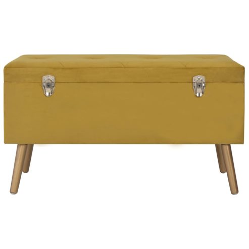 Diese vielseitigen und praktischen Hocker mit Stauraum strahlen Gemütlichkeit aus und fügen sich perfekt in jeden Einrichtungsstil ein. Diese Hocker sind mit Samt bezogen und mit Schaumstoff gepolstert, was sie äußerst komfortabel macht. Ihre Massivholzbeine sorgen nicht nur für Stabilität und Langlebigkeit, sondern verleihen ihnen auch einen eleganten Look. Unter der Sitzfläche befindet sich ein Ablagefach, das zusätzlichen Stauraum zur Verfügung stellt. ** Farbe: Senfgelb und Golden ** Material: Samt, massives Kiefernholz ** Abmessungen (großer Hocker): 85 x 38 x 47 cm (B x T x H) ** Abmessungen (kleiner Hocker): 40 x 33 x 33 cm (B x T x H) ** Mit einem Staufach unter dem Sitz ** Lieferung umfasst: ** 1 x Großer Hocker ** 2 x Kleiner Hocker Maximal 110 kg pro Sitzplatz. Achte auf die Gefahr von offenem Feuer und anderen starken Wärmequellen in der Nähe des Produkts.