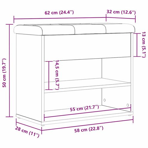 vidaXL Schuhbank mit Speicher Schwarz 60 x 30 x 48 cm Holzwerkstoff