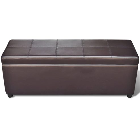 Diese Aufbewahrungsbank aus Holz ist überall ein echter Hingucker. Sie fungiert als Bank und dient auch als Verschönerung. Diese Aufbewahrungsbank verfügt über ein hochdichtes oberes Sitzkissen, das Ihnen den perfekten Komfort und Halt bietet. Die Bank ist gut gepolstert, um optimalen Komfort zu bieten. Die Bank kann geöffnet werden und darunter befindet sich ein großes Staufach zum Verstauen Ihrer Gegenstände. Der versteckte Stauraum im Inneren macht es funktional, ohne seine stilvolle Ausstrahlung zu beeinträchtigen. ** Farbe: Braun ** Gesamtmaße: 116 x 39 x 44 cm (L x B x H) ** Innenmaße: 109 x 28 x 31,5 cm (L x B x H) ** Füßenmaße: 4 x 5 cm (H x Φ) ** Material: PVC: 100%