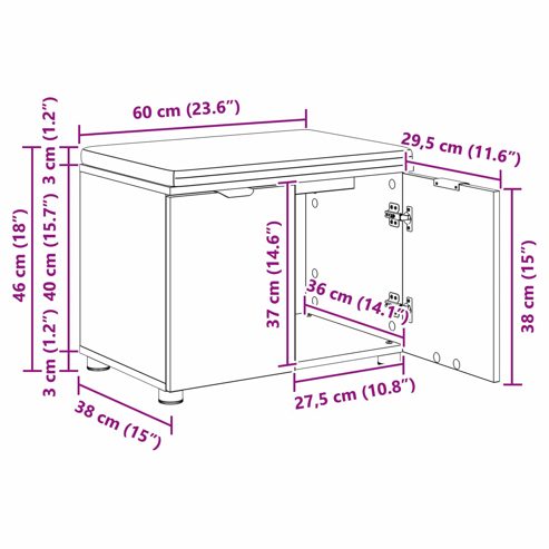 vidaXL Flurbank mit Kissen mit Speicher Sonoma-Eiche 60 x 38 x 46 cm