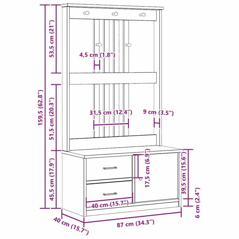 vidaXL Garderobenständer SANDNES 87x40x159,5cm Massivholz Kiefer