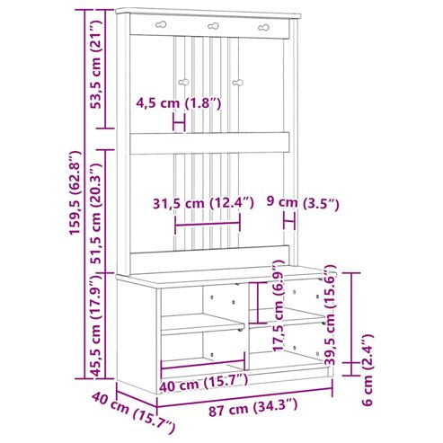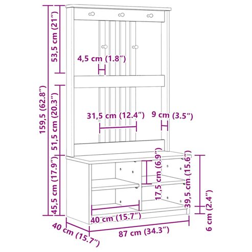 vidaXL Garderobenständer SANDNES 87x40x159,5cm Massivholz Kiefer