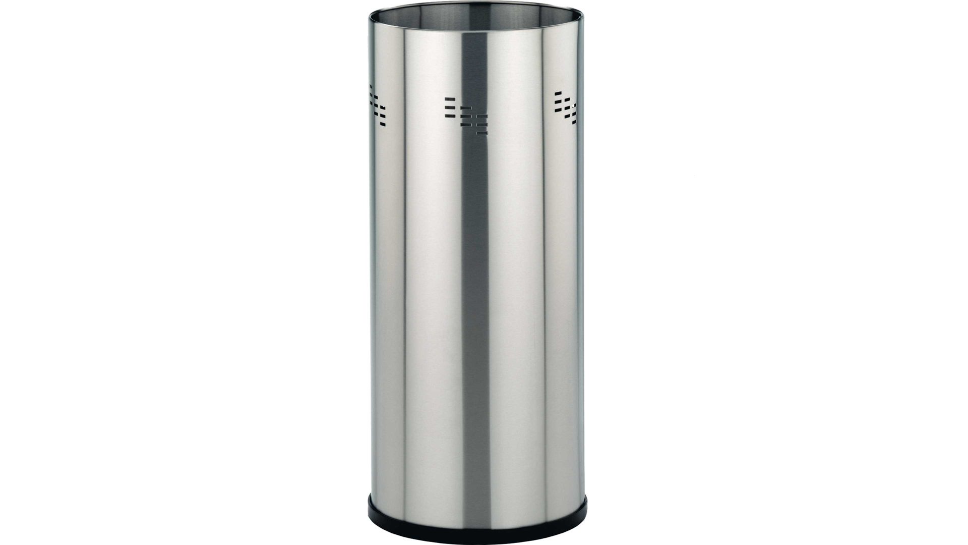 Der schwarze Schirmständer GRAPHIT mit umlaufendem Lochmuster ist aus Metall, die Oberfläche ist matt beschichtet. Die Unterseite ist gummiert. Der Schirmständer hat einen Durchmesser von 21 cm und ist 50 cm hoch.