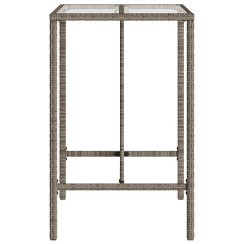 Dieser trendige Outdoor-Bartisch vereint Stil und Funktionalität und wird ein echter Hingucker in deinem Garten, auf deiner Terrasse oder in jedem anderen Außenbereich sein. Langlebiges Material: PE-Rattan, auch als Poly Rattan bekannt, ist ein robustes, pflegeleichtes synthetisches Material, das die Optik von natürlichem Rattan aufweist. Es kennzeichnet sich durch ein geringes Eigengewicht und lässt sich einfach reinigen. Aufgrund seiner Haltbarkeit und Witterungsbeständigkeit wird es häufig bei der Herstellung von Gartenmöbeln verwendet.Tischplatte aus Glas: Die Tischplatte des Gartentisches besteht aus starkem und langlebigem Hartglas, sodass sie leicht mit einem feuchten Tuch gereinigt werden kann und deinem Außenbereich einen Hauch von Eleganz verleiht.Robuster und stabiler Rahmen: Dank des pulverbeschichteten Stahlrahmens ist das Möbelstück robust, stabil und für den täglichen Einsatz im Außenbereich geeignet.Breite Anwendung: Mit seinem markanten Design schafft der Garten-Bartisch eine angenehme Atmosphäre und fügt sich harmonisch in jede Umgebung ein. Gut zu wissen:Wir empfehlen dir, deine Gartenmöbel mit einer wasserdichten Hülle zu schützen, um lange Zeit eine ansprechende Optik aufzuweisen. ** Rattan-Farbe: Grau ** Farbe der Glasplatte: Schwarz ** Material: PE-Rattan, pulverbeschichteter Stahl, Hartglas ** Abmessungen: 70 x 70 x 110 cm (L x B x H) ** Glasstärke: 4 mm ** Zusammenbau erforderlich: Ja