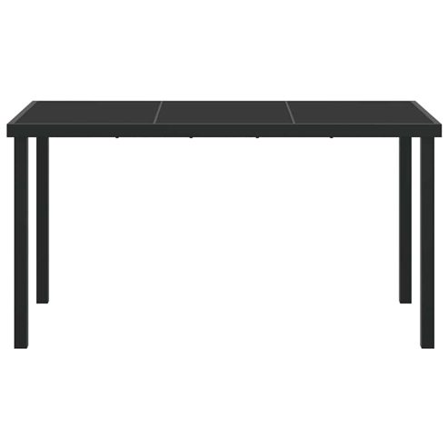 Dieser Gartentisch verbindet modernen Stil mit praktischer Nutzung und verwandelt jeden Garten oder jede Terrasse schnell in einen schicken Essbereich. Mit seinen klaren Linien und dem eleganten Look ist er genau das Richtige für alle, die minimalistisches Design mögen, ohne Abstriche bei Qualität und Langlebigkeit zu machen. Er bringt eine coole Atmosphäre in dein Outdoor-Dining, egal ob du Freunde zu Besuch hast oder einfach unter den Sternen gemütlich essen willst. Schwarz lackierter leichter Rahmen: Der Tisch hat einen modernen schwarzen Rahmen aus solidem Teakholz und Metall. Diese Mischung sorgt für Stabilität und Stärke, perfekt für jedes Wetter. Der Rahmen hebt sich subtil ab und verleiht deinem Außenbereich einen Hauch von Eleganz. Robuste Oberfläche: Die gehärtete Glasplatte sorgt für einen stabilen und eleganten Essbereich. Sie ist schlagfest und super leicht zu reinigen, damit du ihn sorgenfrei genießen kannst. Funktionales Rückendesign: Die Rückseite des Tisches sieht gut aus und bleibt schlank, selbst wenn er nicht an einer Wand steht. Das gibt dir viele Möglichkeiten, wo du ihn in deinem Garten oder auf deiner Terrasse hinstellen kannst. Stützende Beine: Mit stabilen Pfostenbeinen bleibt der Tisch fest stehen. Er ist robust genug für den alltäglichen Gebrauch und Partys und hält allem stand, was ihm begegnet. Minimale Pflege: Er ist so gemacht, dass du ihn leicht pflegen kannst – wirf einfach eine Abdeckung darüber, wenn er nicht in Gebrauch ist. Ein kurzer Reinigungsschritt lässt ihn super aussehen, ohne viel Aufwand. ** Farbe: Schwarz ** Material: Massivholz teak ** Gesamtabmessungen: 140 x 80 x 73 cm (L x B x H) ** Langlebig ** Versammlung erforderlich: Ja ** Lieferung: ** 1 x Tisch