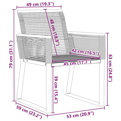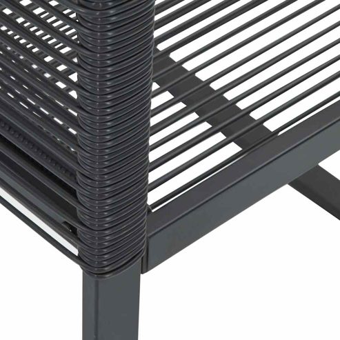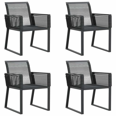 Entspanne dich und genieße die Natur in diesen bequemen Gartenstühlen! Langlebiges Material: PE-Rattan, auch als Poly Rattan bekannt, ist ein robustes, pflegeleichtes synthetisches Material, das die Optik von natürlichem Rattan aufweist. Es kennzeichnet sich durch ein geringes Eigengewicht und lässt sich einfach reinigen. Aufgrund seiner Haltbarkeit und Witterungsbeständigkeit wird es häufig bei der Herstellung von Gartenmöbeln verwendet.Robuster und stabiler Rahmen: Dank des pulverbeschichteten Stahlrahmens ist das Möbelstück robust, stabil und für den täglichen Einsatz im Außenbereich geeignet.Bequemes Sitzerlebnis: Mit einer Rückenlehne und niedrigen Armlehnen versehen, bietet das Möbelstück höchsten Sitzkomfort.Leichter Transport: Dank des geringen Gewichts kannst du diesen Gartensessel leicht umstellen. Gut zu wissen:Wir empfehlen dir, deine Gartenmöbel mit einer wasserdichten Hülle zu schützen, um lange Zeit eine ansprechende Optik aufzuweisen. ** Farbe: Schwarz ** Material: PE-Rattan, pulverbeschichteter Stahl ** Abmessungen (jeweils): 53 x 59 x 79 cm (B x T x H) ** Sitzgröße: 45 x 42 cm (B x T) ** Sitzhöhe vom Boden: 39 cm ** Armlehnenhöhe vom Boden: 63 cm ** Maximale Tragfähigkeit (pro Sitz ): 110 kg ** UV-beständig ** Zusammenbau erforderlich: Ja ** Kissen inbegriffen: Nein ** ** Lieferung umfasst: ** 4 x Gartenstuhl Maximal 110 kg pro Sitzplatz.