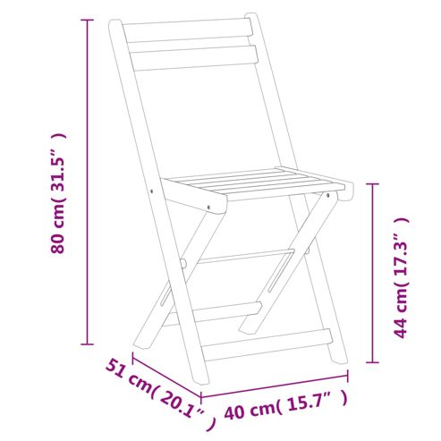 Diese klappbaren Bistrostühle sind eine perfekte Bereicherung für deinen Garten bzw. deine Terrasse und hinterlassen einen bleibenden Eindruck! Langlebiges Material: Massives Akazienholz ist ein schönes Naturmaterial. Akazienholz ist ein tropisches Hartholz, das dicht, robust und langlebig ist.Klappdesign: Diese Gartenstühle lassen sich bei Nichtgebrauch einfach zusammenklappen, um die Lagerung und den Transport zu erleichtern.Einfache Reinigung: Dank der mit Öl behandelten Oberfläche lassen sich die Klappstühle leicht mit einem feuchten Tuch reinigen. Gut zu wissen:Wir empfehlen dir, deine Gartenmöbel mit einer wasserdichten Hülle zu schützen, um lange Zeit eine ansprechende Optik aufzuweisen. ** Material: Akazien-Massivholz, mit Öl behandelt ** Abmessungen: 40 x 51 x 80 cm (B x T x H) ** Sitzhöhe vom Boden: 44 cm ** Maximale Tragfähigkeit (pro Sitz ): 110 kg ** Zusammenbau erforderlich: Ja ** Lieferung umfasst: ** 4 x Bistrostuhl Maximal 110 kg pro Sitzplatz.