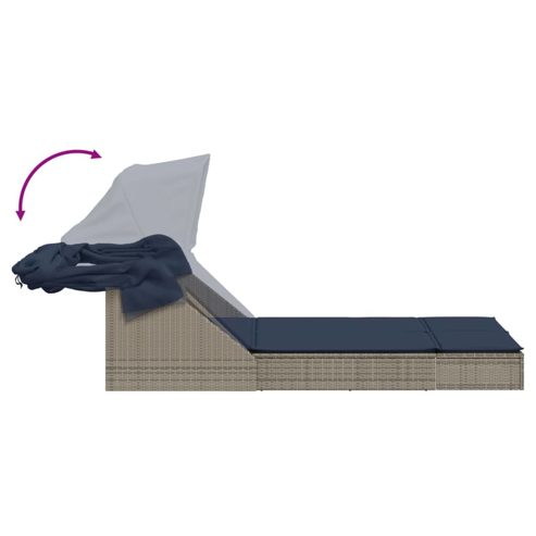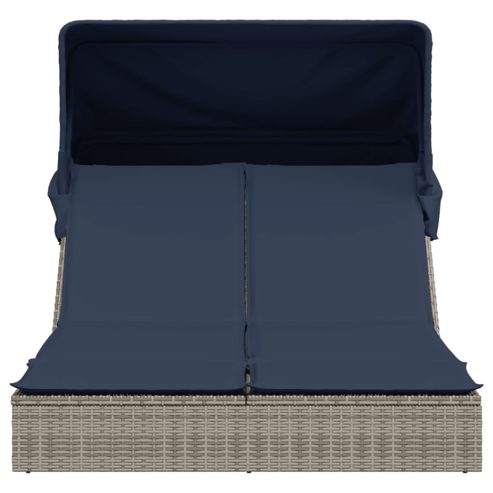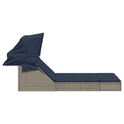 vidaXL Doppelte Sonnenliege mit Baldachin und Kissen, grau, Polyrattan