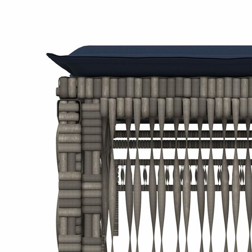 Entspannen Sie sich und genießen Sie die Natur in diesen bequemen Sonnenliegen! Langlebiges Material: PE-Rattan, auch Polyrattan genannt, ist ein robustes, pflegeleichtes Kunststoffmaterial, das natürlichem Rattan ähnelt. Es ist leicht, einfach zu reinigen und wird aufgrund seiner Langlebigkeit und Wetterbeständigkeit häufig für Gartenmöbel verwendet.Verstellbare Rückenlehne: Dieses Gartenmöbel verfügt über eine 5-fach verstellbare Rückenlehne, sodass Sie ganz einfach die bequemste und geeignetste Entspannungsposition finden.Bequemes Sitzerlebnis: Dieses Gartenmöbel mit dick gepolsterten Kissen bietet ein komfortables Sitzerlebnis.Abnehmbarer und waschbarer Bezug: Diese Sitzkissen verfügen über abnehmbare Bezüge zum einfachen Waschen und Pflegen.Robuster und stabiler Rahmen: Der pulverbeschichtete Stahlrahmen sorgt dafür, dass das Gartenmöbel robust und stabil für den täglichen Gebrauch im Freien ist. Gut zu wissen: Damit Ihre Gartenmöbel lange schön bleiben, empfehlen wir Ihnen, sie mit einer wasserdichten Abdeckung zu schützen. ** UV-beständig ** Montage erforderlich: Ja ** Sonnenliege: ** Farbe: Grau ** Material: PE-Rattan, pulverbeschichteter Stahl ** Maße: 198 x 55 x 39/52/65/77/88/96 cm (L x B x H) ** Liegeflächengröße: 198 x 55 cm (L x B) ** Sitzhöhe vom Boden (ohne Kissen): 39 cm ** Maximale Tragkraft: 110 kg ** Beistelltisch: ** Farbe: Grau ** Material: PE-Rattan, pulverbeschichteter Stahl ** Maße: 35 x 35 x 36 cm (L x B x H) ** Kissen: ** Farbe: Marineblau ** Bezugsmaterial: Stoff (100 % Polyester) ** Füllmaterial: Schaumstoff ** Kissenmaße: 200 x 55 x 3 cm (B x T x H) ** Lieferumfang: ** 2 x Sonnenliege ** 1 x Beistelltisch ** 2 x Kissen mit abnehmbarem und waschbarem Bezug