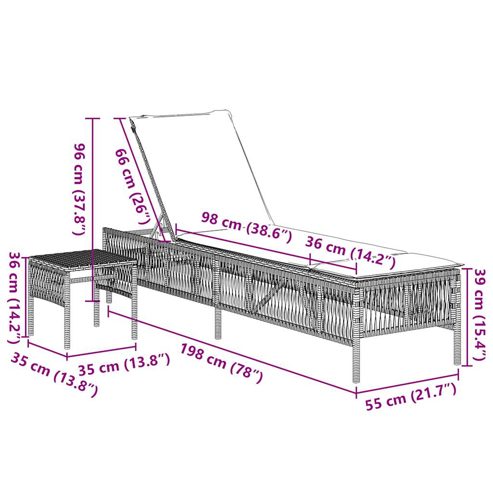 vidaXL Sonnenliegen 2 Stk. mit Tisch Schwarz Poly Rattan