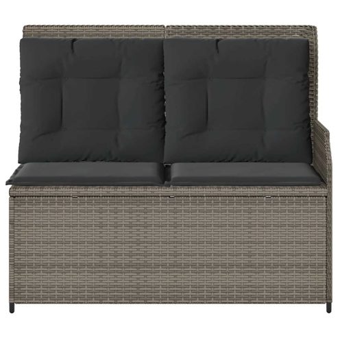 vidaXL Gartenbank Verstellbar mit Kissen Grau Poly Rattan