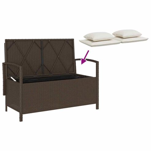 vidaXL Gartenbank mit Stauraum und Kissen Braun Poly Rattan