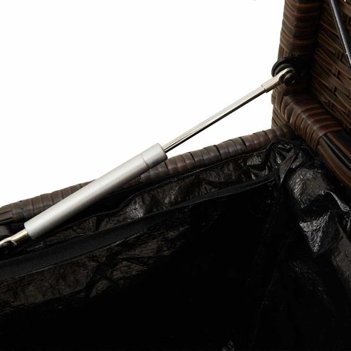 Diese Sitzbank bietet nicht nur eine bequeme Sitzgelegenheit im Außenbereich, sondern eignet sich auch perfekt, um Gartenkissen, Gartengeräte, Handtücher und andere Gegenstände ordentlich und griffbereit aufzubewahren. Langlebiges Material: PE-Rattan, auch als Poly Rattan bekannt, ist ein robustes, pflegeleichtes synthetisches Material, das die Optik von natürlichem Rattan aufweist. Es kennzeichnet sich durch ein geringes Eigengewicht und lässt sich einfach reinigen. Aufgrund seiner Haltbarkeit und Witterungsbeständigkeit wird es häufig bei der Herstellung von Gartenmöbeln verwendet.Stauraum: Der Gartenhocker verfügt über einen Stauraum an der Unterseite, der mit einem wasserfesten Beutel zur Aufbewahrung von Kissen, Spielzeug und anderen Gegenständen ausgestattet ist. Der innere Beutel kann mit Klettverschlüssen sicher am Sitz befestigt werden, was für Stabilität sorgt und Bewegungen verhindert.Sicheres und einfaches Öffnen und Schließen: Die Gasfeder erleichtert das Öffnen des Deckels und verhindert das Einklemmen der Finger.Bequemes Sitzerlebnis: Dieser Gartensessel mit dick gepolsterten Kissen bietet ein angenehmes Sitzgefühl.Abnehmbarer und waschbarer Bezug: Diese Sitzkissen verfügen über abnehmbare Bezüge für einfaches Waschen und Pflegen. Gut zu wissen:Wir empfehlen dir, deine Gartenmöbel mit einer wasserdichten Hülle zu schützen, um lange Zeit eine ansprechende Optik aufzuweisen. ** Gartenbank mit Stauraum: ** Farbe: Braun ** Material: PE-Rattan, pulverbeschichteter Stahl ** Gesamtabmessungen: 111 x 56 x 87 cm (B x T x H) ** Abmessungen des Stauraums: 101 x 46,5 x 33 cm (B x T x H) ** Sitzgröße: 105 x 48 cm (B x T) ** Sitzhöhe vom Boden (ohne Kissen): 45 cm ** Armlehnenhöhe vom Boden: 64/65 cm ** Maximale Höhe (mit geöffnetem Deckel): 92 cm ** Abmessungen des Beutels: 101 x 46 x 33 cm (L x B x H) ** Max. Tragfähigkeit (pro Sitz): 110 kg ** UV-beständig ** Wasserfest ** Zusammenbau erforderlich: Ja ** Kissen: ** Farbe: Cremeweiß ** Bezugsmaterial: Stoff (100% Polyester) ** Füllmaterial des Rückenkissens: PP-Faser ** Füllmaterial des Sitzkissen: Schaumstoff ** Abmessungen des Sitzkissens: 107 x 50 x 3 cm (B x T x H) ** Abmessungen des Rückenkissens: 35 x 37 x 15 cm (B x T x H) ** Lieferung umfasst: ** 1 x Gartenbank mit Stauraum und wasserfestem Beutel ** 1 x Sitzkissen mit abnehmbarem und waschbarem Bezug ** 2 x Rückenkissen mit abnehmbarem und waschbarem Bezug