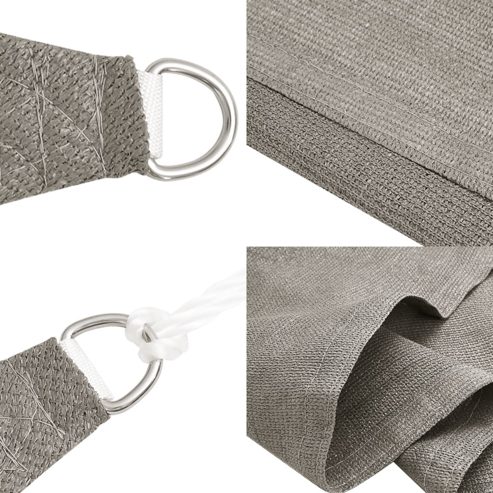 Dieses Sonnensegel aus HDPE bietet Schutz vor der Sonne und spendet überall angenehmen Schatten. Langlebiges Material: Polyethylen hoher Dichte (HDPE) bietet eine starke Oberflächenbeständigkeit und ist stoß- und kratzfest. Zudem ist es UV-beständig, was es vor Sonnenschäden und Verfärbungen schützt.Einfache Montage: Das Sonnensegel ist mit integrierten Edelstahl-Befestigungen an allen Ecken versehen und lässt sich mit den mitgelieferten Seilen einfach montieren.Breite Anwendung: Die Sonnenplane lässt sich in Gärten, auf Terrassen, neben dem Pool, im Hinterhof oder in jedem anderen Außenbereich vielseitig einsetzen. Sie eignet sich perfekt, um etwas Schatten zu spenden. ** Farbe: Hellgrau ** Material: 100% HDPE (Polyethylen hoher Dichte) ** Größe: 2,5 x 3,5 m (B x L) ** Form: Rechteckig ** Ca. 90% UV-Schutz ** Wind- und wasserdurchlässig ** Schimmel- und UV-beständig, atmungsaktives HDPE ** Edelstahlbefestigungen an jeder Ecke ** Inkl. 4 x 1,5 m PE-Seil