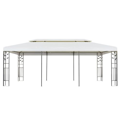Dieser geräumige Gartenpavillon ist eine elegante Ergänzung zu deinem Außenbereich und bietet deiner Familie und deinen Freunden einen schattigen und kühlen Ort an sonnigen Tagen. Stahlrahmen: Stahl ist ein außergewöhnlich hartes und starkes Material. Er bietet Robustheit und Stabilität. Die Pulverbeschichtung bildet eine Schutzschicht gegen Abnutzung und Verschleiß.Langlebiges Dach: Das Dach besteht aus Polyester mit PA-Beschichtung und ist daher wasserfest und UV-beständig, sodass sich dieser Pavillon bestens für den Einsatz im Außenbereich eignet. Gute Belüftung: Das Doppeldach ermöglicht eine gute Luftzirkulation und sorgt für Stabilität bei Windeinwirkung. Verstärkte Ecken: Dank der 4 verstärkten Ecken ist das Gartenzelt sehr stabil. Es macht eine gute Figur in deinem Außenbereich und verleiht ihm eine stilvolle Note. Einfache Montage: Dank der Klettverschlüsse lässt sich die Plane einfach am Rahmen des Gartenpavillons befestigen. Gut zu wissen:Dieses Produkt ist nicht für den Einsatz bei schlechten Wetterbedingungen wie starkem Wind, starkem Regen, Schnee, Sturm usw. geeignet. ** Farbe: Weiß ** Rahmenmaterial: Pulverbeschichteter Stahl ** Dachmaterial: Stoff (100 % Polyester) mit PA-Beschichtung ** Größe: 6 x 3 m (L x B) ** Gesamthöhe: 2,65 m ** Traufhöhe: 2 m ** Stoffdichte: 180 g/m² ** Dach aus UV-beständigem und wasserfestem Stoff ** Zusammenbau erforderlich: Ja