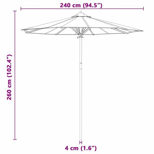 Dieser Gartenparasol ist die stylische Lösung für Schatten im Freien und genau das Richtige für den Sommer. Er bietet dir die perfekte Mischung aus gutem Aussehen und Praktikabilität. Seine klaren Linien und das einfache Design sorgen für einen modernen Style und geben effektiv Schatten für deine Sitz- und Essbereiche. Das natürliche Bambusmaterial verleiht ihm eine warme Ausstrahlung, die sich super in deinen Garten oder auf deine Terrasse einfügt und selbst an den heißesten Tagen einen gemütlichen Rückzugsort schafft. Erstklassige Materialien: Hergestellt aus hochwertigem Bambus, ist dieser Gartenparasol stabil und sieht toll aus. Er passt perfekt in jede Outdoor-Dinerszene. Sein natürlicher Charme sorgt für haltbares Design und eine ansprechende Optik, die gut zu verschiedenen Gartenstilen passt. Das verwendete Polyester macht ihn zudem wetterfest, sodass er die ganze Sommersaison durchhält. Einfache Komponenten: Der Parasol hat einen leichten Metallmechanismus, der das Öffnen und Schließen super einfach macht. Du kannst dich auf seine Zuverlässigkeit verlassen. Er ist für den täglichen Gebrauch gedacht und bleibt durch sichere Ständer auch an windigen Tagen stabil. Das klare Design sorgt dafür, dass alle Teile gut zusammenarbeiten und dir angenehmen Schatten bieten. Durchdachtes Design: Mit seinem schlichten, schicken Design setzt dieser Parasol stylische Akzente in jedem Außenbereich und passt gut zu allen Arten von Möbeln. Ideal für gesellige Treffen im Freien, beim Essen oder einfach zum Entspannen – eine vielseitige Wahl für deinen Garten. Wofür er gedacht ist: Dieser Parasol ist für die Nutzung im Freien gedacht, speziell für Gärten und Terrassen im Sommer. Er bietet dir an sonnigen Tagen den Komfort, den du brauchst, um drinnen oder draußen zu relaxen, lesen oder essen. Pflegehinweise: Halte ihn gut aussehend, indem du ihn regelmäßig mit einem feuchten, weichen Tuch abwischst, um Staub und Schmutz zu entfernen. Lagere ihn an einem trockenen, schattigen Ort, wenn du ihn nicht benutzt, um das Material in Schuss zu halten. Mit ein bisschen regelmäßiger Pflege bleibt der Parasol lange schön und nützlich in deinem Außenbereich. ** Farbe: Dunkelgrau ** Material: Bambus ** Gesamtabmessungen: 240 x 240 x 260 cm (L x B x H) ** Form: Rund ** Langlebig ** Versammlung erforderlich: Ja ** Lieferung: ** 1 x Sonnenschirm