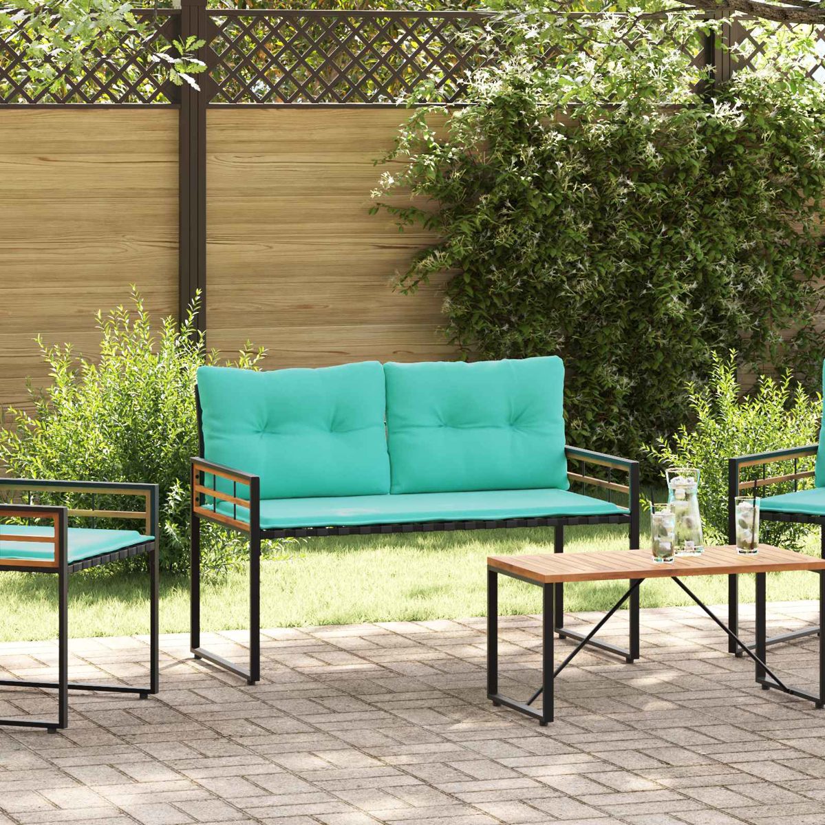 Die moderne Holzschichtbank verbindet gleichzeitig Stil und Widerstandsfähigkeit. Sie ist ideal für den Innen- und Außenbereich und macht jeden Platz zu etwas Besonderem. Egal ob im Garten oder auf einem schicken Balkon – diese Bank wertet jeden Raum im Handumdrehen auf. Stell dir vor, wie entspannend es ist, auf dieser Bank die Natur zu genießen oder einen Stadtblick zu bewundern! Hochwertiges Material: Diese Bank ist aus massivem Akazienholz und pulverbeschichtetem Stahl gefertigt – sie vereint Langlebigkeit und schönes Design. Das Holz hält den Witterungseinflüssen stand, während der Stahl eine robuste Oberfläche bietet, die toll aussieht. Funktionale Features: Mit verstellbaren Füßen sorgt sie für Stabilität auf unebenen Böden und schützt deinen Untergrund. Das schlichte Design hält die Bank elegant und praktisch zugleich, perfekt für verschiedene Einsatzorte. Praktische Komponenten: Mit einem bequemen, abnehmbaren Kissen und einem Reißverschluss ausgestattet, bietet diese Bank höchsten Komfort. Das Kissen bleibt dank der speziellen Form an Ort und Stelle, lässt sich aber auch einfach abnehmen, um es zu reinigen oder zu verstauen. Vielseitige Anwendung: Ob auf dem Balkon, im Garten oder auf der Terrasse, diese Bank ist eine tolle Ergänzung für jeden Raum. Sie eignet sich perfekt für sonnige Nachmittage oder entspannte Stunden im Freien. Einfache Pflege: Die Bank braucht nur wenig Pflege: einfach mit einem feuchten Tuch abwischen, direkte Sonneneinstrahlung meiden und die Kissen bei schlechtem Wetter reinholen. So bleibt sie immer einladend und schön, für viele Jahre! ** Farbe: Türkis ** Material: Massives Akazienholz und pulverbeschichteter Stahl ** Oberfläche: Pulverbeschichtet ** Gesamtabmessungen: 114 x 55 x 77 cm (L x B x H) ** Gewicht: 9,4 kg ** Verstellbare Füße ** Sitzbereich: 114 x 55 cm (B x T) ** Sitzkissen abnehmbar: Reißverschluss ** Sitzhöhe vom Boden: 41,5 cm ** Rahmenmaterial: Pulverbeschichteter Stahl ** Füllmaterial: Schaum ** mit 2 Kissen ** Max. Gewicht: 110 kg ** Für Innen- und Außenbereich ** Lieferumfang: ** 1 x Holz-Lagenbank ** Montage erforderlich: Ja