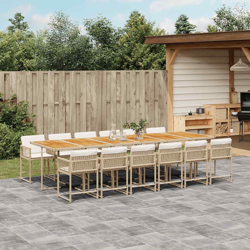 vidaXL 13-tlg. Garten-Essgruppe mit Kissen Beige Poly Rattan
