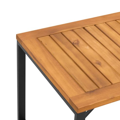Dieses moderne Möbelset bringt eine zeitgemäße Ausstrahlung in deine Innen- und Außenbereiche. Die Mischung aus Form und Funktion sorgt für glatte Oberflächen und eine schlanke Silhouette, die in jeden Stil passt. Egal, ob auf deiner Terrasse, dem Balkon, im Garten oder drinnen im Wintergarten oder Wohnzimmer, hier hast du einen tollen Platz, um zu entspannen oder zu feiern. Der auffällige schwarze Rahmen und die Polyesterkissen garantieren nicht nur einen tollen Look, sondern auch langen Komfort. Super vielseitig - perfekt für gesellige Runden oder zum Entspannen allein, bringt es jedem Raum etwas Besonderes. Elegante Materialkombination Eine stylishe Mischung aus massivem Akazienholz und pulverbeschichtetem Stahl sorgt für ein edles Aussehen und ist trotzdem langlebig. Diese Kombi ist UV-beständig und hat eine schöne Textur, die deine Dekoration ergänzt und gleichzeitig robuste Elemente bietet, die drinnen und draußen einsetzbar sind. Durchdachtes Design Das komplette Set hat eine robuste Tischoberfläche aus Akazienholz für einen stabilen und stylischen Look. Zusammen mit dem pulverbeschichteten Stahlrahmen und den Rücken- und Sitzteilen sorgt jedes Element für eine stabile Wirkung. Die zuverlässige Konstruktion ermöglicht dir stundenlangen Genuss, egal ob beim Empfangen von Gästen oder beim entspannten Alleinsein. Komfort und Ergonomie Genieß tollen Komfort mit den abnehmbaren Polyesterkissen mit Reißverschluss. Ihr kastenförmiges Design sorgt für ein angenehmes Sitzen und verbindet schickes Aussehen mit weichem Komfort. Das flache Design der Armlehnen unterstützt eine entspannte Körperhaltung und erhöht den Komfort während der Nutzung. Vielfältige Einsatzmöglichkeiten Dieses Set passt sich leicht verschiedenen Umgebungen an – von Poolseiten-Entspannung bis zu coolen Gartenpartys. Es ergänzt zahlreiche Stile und ist eine vielseitige Wahl für alle, die ihre Wohnlichkeit in verschiedenen Räumen aufpeppen möchten. Einfach zu pflegen Für die Nutzerfreundlichkeit benötigen die Kissen nur ein kleines bisschen Pflege. Bewahre sie einfach an einem kühlen, trockenen Ort auf, wenn du sie nicht brauchst, und schütze sie vor direkter Witterung, damit sie lange so hübsch bleiben und dir viel Freude bereiten. ** Farbe: Hellgrau ** Material: Massives Akazienholz und pulverbeschichteter Stahl ** Langlebig ** Sitzfläche ** Sitzbreite: 59 cm ** Sitztiefe: 55 cm ** Armlehnenhöhe vom Sitz aus: 14,5 cm ** Max. Gewicht: 110 kg pro Sitz ** Sitzplatzkapazität: 2 ** Langlebig ** Kastenpolster ** Reißverschluss ** Montage erforderlich: Ja ** Lieferumfang: ** 2x Stühle: 59 x 55 x 77 cm (LxBxH) ** 1 x Kleiner Tisch: 40 x 40 x 38,5 cm (LxBxH)