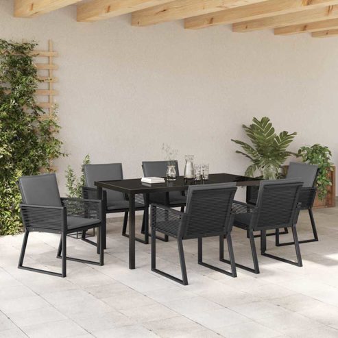 vidaXL Garten Essgruppe 7 pcs Schwarz Pulverbeschichteter Stahl