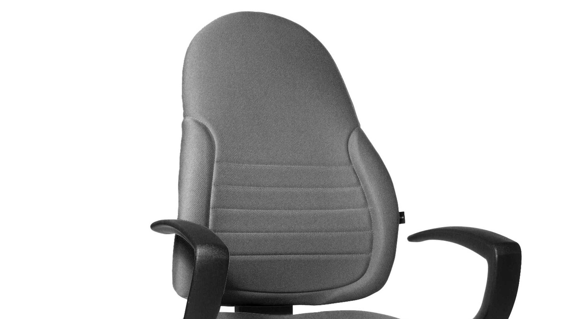 Das schwarze Gestell und der gesteppte Bezug sorgen für ein edles Aussehen und bringen eine professionelle Atmosphäre in Ihren Arbeitsbereich. Der Drehstuhl mit schwarzen Armlehnen verfügt über eine hohe, verstellbare Rückenlehne und einen speziellen Bandscheibensitz, der dank seiner Federkraft individuell auf Ihre Sitzbedürfnisse einstellbar ist.