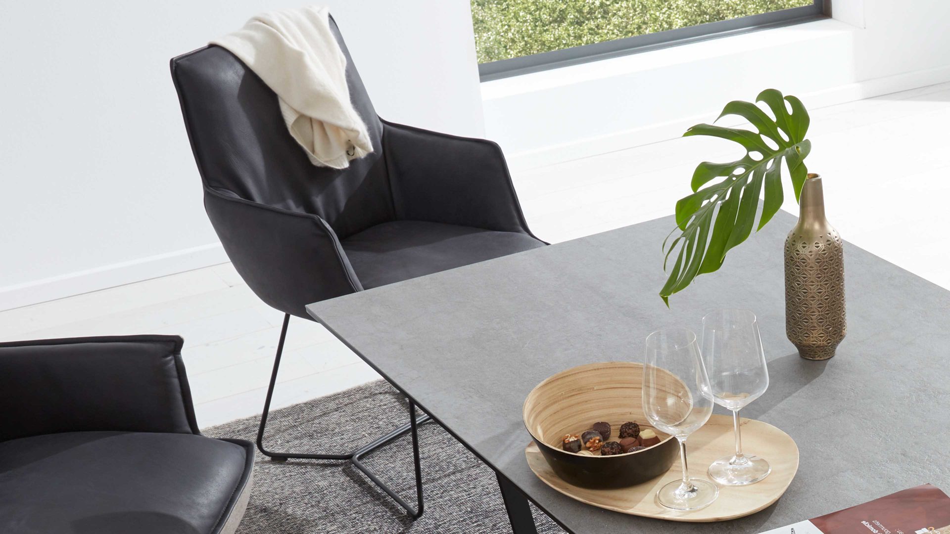 Der top verarbeitete VENJAKOB Polsterstuhl Leva ist Made in Germany. Er kombiniert ein edelstahlfarbenes Vierfußgestell mit einem puristisch-schwarzen Stoffbezug. Während das Gestell für die nötige Stabilität sorgt, überzeugt der Bezug mit seiner stilvollen Optik und angenehmen Haptik. Im Ganzen strahlt der Esszimmerstuhl moderne Eleganz aus, die mit den verschiedensten Einrichtungskonzepten bestens harmoniert.