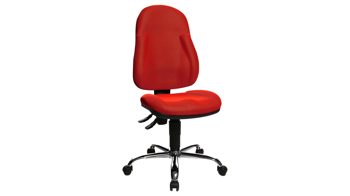 Das deutsche Qualitätsprodukt ist mit einem bequemen Flachsitz und der besonderen Toplift Sitzhöhenverstellung ausgestattet und passt sich dadurch optimal an jede Körpergröße an. Der dunkelrote Sitzbezug und das verchromte Stahlfusskreuz überzeugen durch moderne Optik.