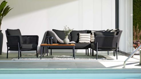 Damit deine Outdoor-Lounge perfekt wirkt, kannst du die Module flexibel anordnen – als weitläufige Ecke, offene U-Form oder kompakte Sitzgruppe. Die Kombination aus Rope, Aluminium und Teakholz fügt sich ideal in moderne Außenbereiche ein. Mit Outdoor-Kissen, großen Pflanzen und warmem Licht gestaltest du deinen persönlichen Wohlfühlort im Freien.