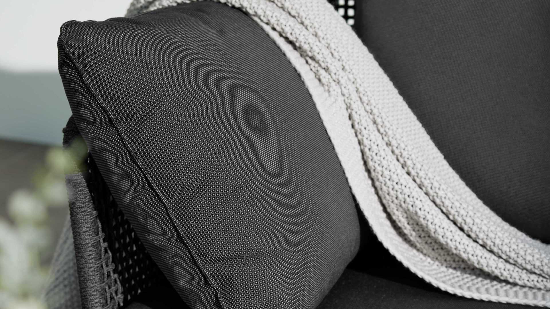 Das fünfteilige Loungemöbel-Set aus der Interliving Gartenmöbel Serie 7005 kombiniert moderne Materialien, gemütlichen Komfort und eine flexible Modulbauweise – ideal für deine Terrasse, den Garten oder den Balkon. Graues Ropegeflecht aus 100 % Polyester trifft auf ein anthrazitfarben pulverbeschichtetes Aluminiumgestell und dunkelgraue, wetterfeste Olefin-Bezüge. Alle Elemente sind perfekt aufeinander abgestimmt und werden durch die vom Hersteller gewährte 5 Jahre Herstellergarantie ergänzt.