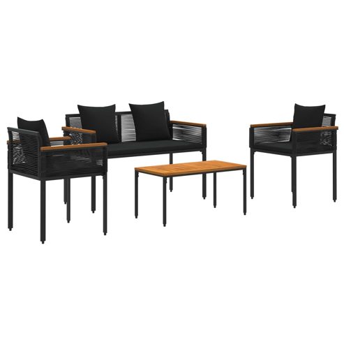 vidaXL Gartenmöbel Set mit Kissen 4 pcs Schwarz PE-Rattan