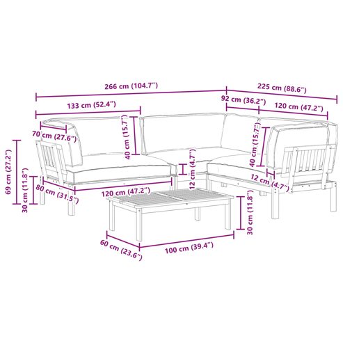 Dieses Lounge-Sofa-Set aus Holz ist eine top Sitzlösung für draußen. Sein modernes Design schafft eine einladende Atmosphäre, egal ob im Garten oder auf der Terrasse. Die modularen Elemente bieten Flexibilität und Komfort, perfekt für die verschiedenen Möglichkeiten Outdoor. Der stilvolle Look in warmen Brauntönen vom massiven Akazienholz bringt jeden Bereich zum Strahlen, wenn du Chillen oder Gäste bewirten willst. Massives akazienholz Das Sofa-Set nutzt robustes Akazienholz für lange Haltbarkeit und einen warmen Farbton. Mit einem geölten Finish behandelt, hält es Feuchtigkeit ab und hebt die natürliche Farbe hervor, ideal für den dauerhaften Einsatz im Freien. Modulares Design Jedes Element wurde modular konzipiert, sodass du verschiedene Aufstellungen für deinen Außenbereich und deine Sitzbedürfnisse gestalten kannst. Das macht es einfach, dein Setup zu ändern, wenn sich dein Lebensstil ändert. Wetterfeste Polsterung Das Set hat Outdoor-Kissen aus Oxford-Stoff, die super gegen Witterungseinflüsse beständig sind. Das sorgt für dauerhaften Komfort bei jedem Wetter und macht sie perfekt für langfristigen Einsatz draußen. Eleganter moderner Stil Mit klaren Linien und minimalistischem Design ist das Set ein Beispiel für modernes Design. Die Schlichtheit und Funktionalität passen zu vielen Outdoor-Stilen und schaffen einen harmonischen Look für deinen Garten oder deine Terrasse. Pflege & Wartung Halte das Sofa-Set in Topform, indem du es mit einem trockenen Tuch abwischst und eine Abdeckung verwendest, wenn es nicht gebraucht wird. Vermeide direkte Sonneneinstrahlung und aggressive Chemikalien, um die Lebensdauer zu verlängern und die Leistung zu sichern. ** Farbe: Taupe ** Material: Massivholz Akazie ** Oberfläche: Geölt ** Gesamtabmessungen: 266 x 225 x 69 cm (L x B x H) ** Gewicht: 41,9 kg ** Modular ** Sitzbereich: 120 x 80 cm (B x T) ** Max. Gewicht: 660 kg ** Nur für den Außenbereich ** Lieferumfang: ** 3 x Ecksofa: 133 x 92 x 69 cm (LxBxH) ** 1 x Tisch: 100 x 60 x 30 cm (LxBxH) ** 3 x Sitzkissen: 120 x 80 x 12 cm (LxBxH) ** 3 x Rückenkissen: 120 x 40 x 12 cm (LxBxH) ** 3 x Rückenkissen: 70 x 40 x 12 cm (LxBxH) ** Montage erforderlich: Ja Maximal 110 kg pro Sitzplatz.