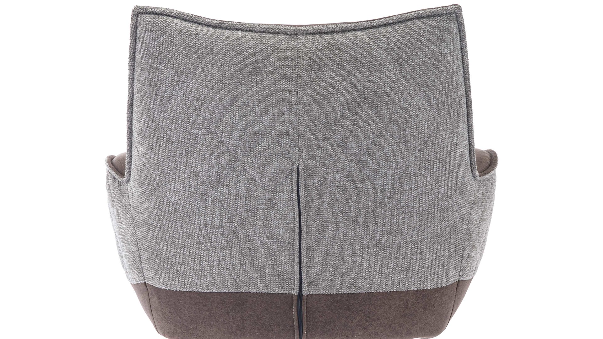 brauner Stoffbezug im Antikleder-Look, kombiniert mit beige-braun meliertem Stoffbezug mit Rautensteppung und mattschwarzem Metall