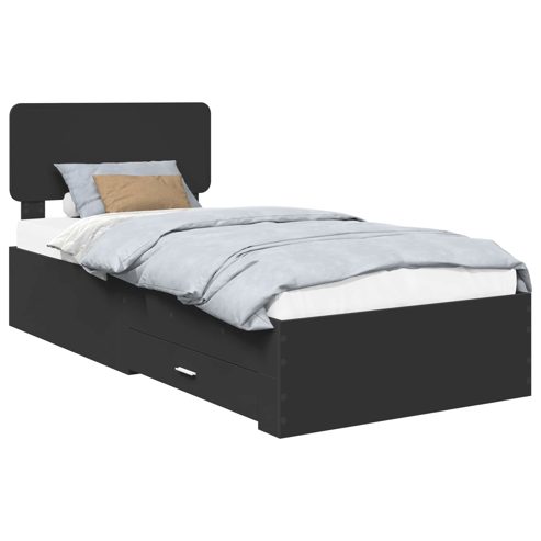 vidaXL Bettrahmen mit Schubladen Schwarz 75 x 190 cm Holzwerkstoff