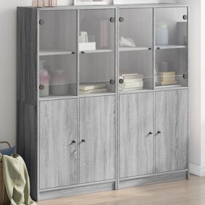 Dieses Bücherregal bietet eine ideale Lösung für die ordentliche Aufbewahrung deiner Bücher und verleiht deiner Einrichtung einen Hauch von modernem Charme. Langlebiges und robustes Material: Holzwerkstoff ist ein Material von außergewöhnlicher Qualität mit glatter Oberfläche, das sich durch Festigkeit, Stabilität und Feuchtigkeitsbeständigkeit auszeichnet.Viel Stauraum: Das Bücherregal bietet reichlich Stauraum, um deine Sammlung von Büchern, Zeitschriften und Dokumenten ordentlich aufzubewahren.Stabile und robuste Oberplatte: Die Oberplatte bietet den perfekten Platz, um Dekoartikel, Bilderrahmen und Topfpflanzen zur Schau zu stellen.Praktisches Design: Schütze deine wichtigsten Sachen vor Staub, indem du sie hinter den Türen verstaust. Dank der Griffe lässt sich das Bücherregal leicht öffnen. Achtung:Um ein Umkippen zu vermeiden, sollte dieses Produkt mit der mitgelieferten Wandhalterung gesichert werden. ** Farbe: Grau Sonoma ** Material: Holzwerkstoff, Glas ** Abmessungen: 136 x 37 x 142 cm (B x T x H) ** Abmessungen des Fachs: 32 x 37 x 32 cm (B x T x H) ** Anzahl der Fächer: 16 ** Zusammenbau erforderlich: Ja Legal Documents: Weitere Informationen, wie Sie Ihre Möbel vor dem Umkippen schützen können, finden Sie hier