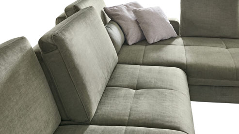 Des Weiteren können Sie einige Details an Ihre Wünsche und Bedürfnisse anpassen. Die Polstermöbel sind preisgleich mit einer soften Kaltschaum- oder etwas festeren Federkernpolsterung sowie mit mattschwarzen oder glänzenden Metallfüßen erhältlich. Darüber hinaus profitieren Sie von der umfangreichen Bezugauswahl. Es sind verschiedene Zusammenstellungen planbar, die sich mit vielen Funktionen ergänzen lassen.