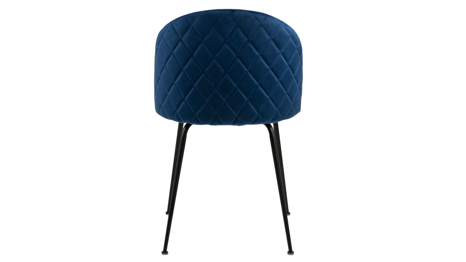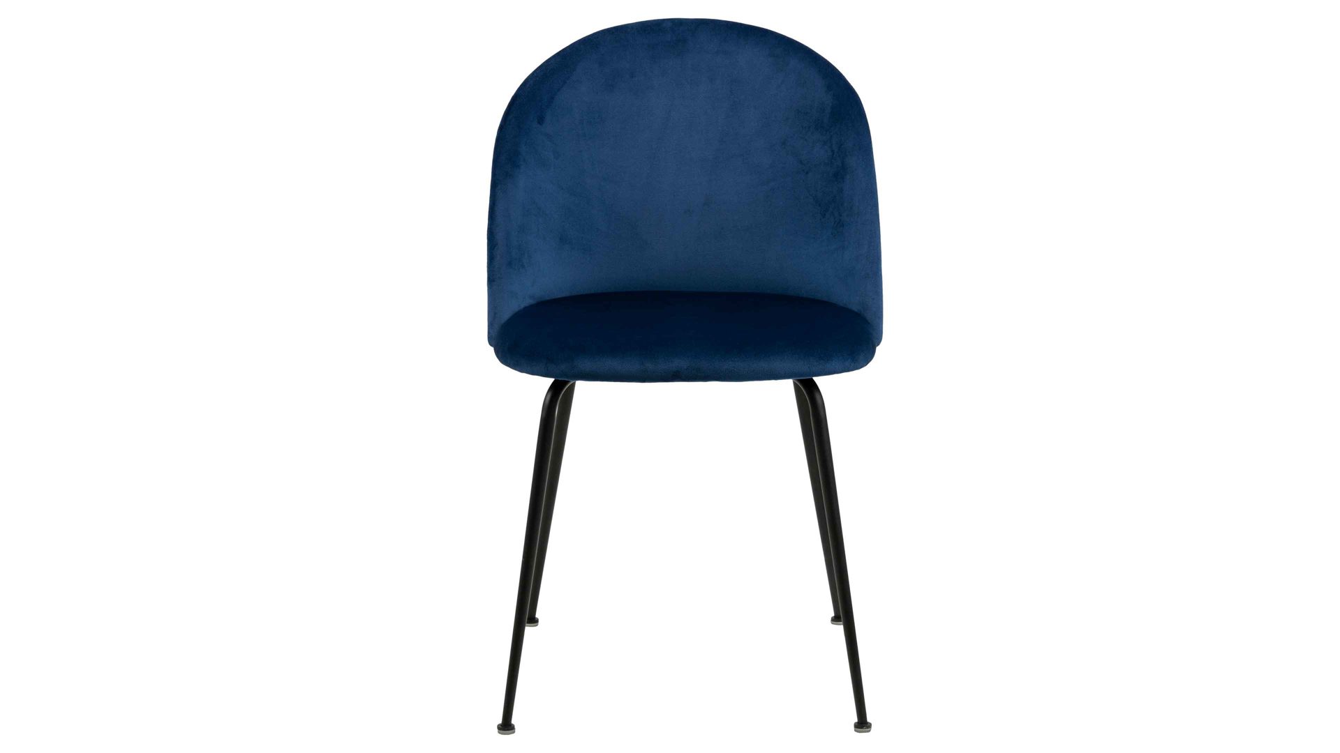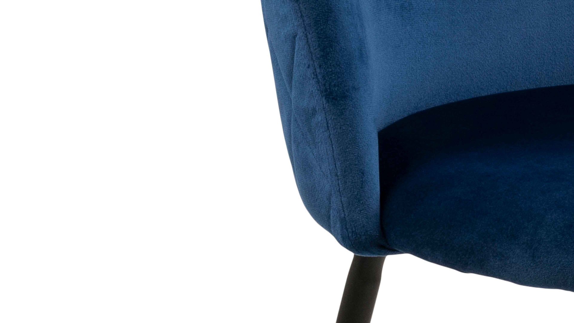 Dabei harmoniert der Polsterstuhl in seiner sanften Formensprache mit zahlreichen Einrichtungsstilen. Moderne Geradlinigkeit ergänzt er ebenso stimmig wie den beliebten Vintage-Trend. Auch farblich erlaubt der Esszimmerstuhl Louise angenehme Freiheit beim Kombinieren: Dafür sorgt der dunkelblaue Bezug Dublin 49 in Samtoptik, der sowohl die Sitzfläche als auch die Rückenlehne umhüllt. Auf der Rückseite setzt eine Harlekinsteppung einen charmanten Blickfang. Die rau pulverbeschichteten Metallfüße ergänzen das Gesamtbild in dezentem Schwarz.