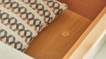 Holzfüße sowie eine passende Holzleiste verleihen der Doppelliege einen sicheren Stand. Wenn Sie Eichenholz bevorzugen, erhalten Sie dies gegen Mehrpreis. Ganz nach Belieben ist das praktische Schlafsofa Patti frei im Raum aufstellbar, denn auch sein Rücken ist mit Stoff bezogen. Das Modell steht in einer Vielzahl an schicken Bezügen und fünf Holzfuß-Varianten zur Wahl.